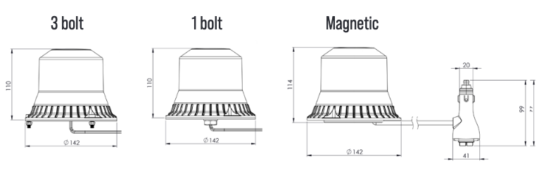 Contributing to the vast features and approvals of the Tornado B110 beacon include CISPR25 Level 3 and as standard built in auto dim sensor. The Tornado B110 beacon features ultra-bright latest generation LEDs under an ultra-strong UV stabilised polycarbonate lens offering multiple lens colour options and LED colours. The Tornado B110 beacon is tough enough for any job and that is why it has been designed for a fit-and-forget purpose and is endorsed with a 2-year warranty.